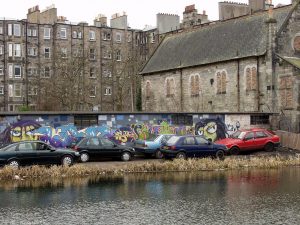 ↑ Under Viewforth Bridge beside the canal