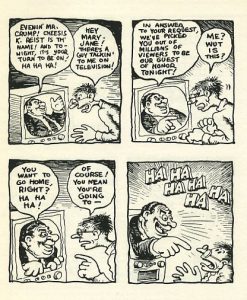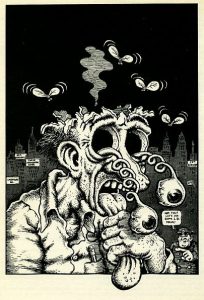 I’ve created these pages to promote his work because for decades I had difficulty getting hold of comics and books. Robbie the Pict had a head shop in St Leonard’s Street in Edinburgh which sold some of them, and indeed, Robbie was instrumental in getting Mr Crumb to come to Edinburgh’s Theatre Workshop. You can read more at my description of The Complete Crumb Comics volume 16.